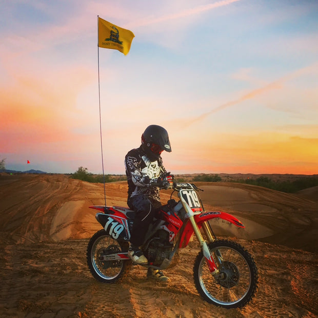 In 2010, after decades of riding and constantly breaking those all-important safety whips, we invented a mount unlike anything on the market. It didn’t come from a boardroom, it came from our camp at Wash-15, surrounded by friends, old school stories, vintage ATCs and the place that shaped us.